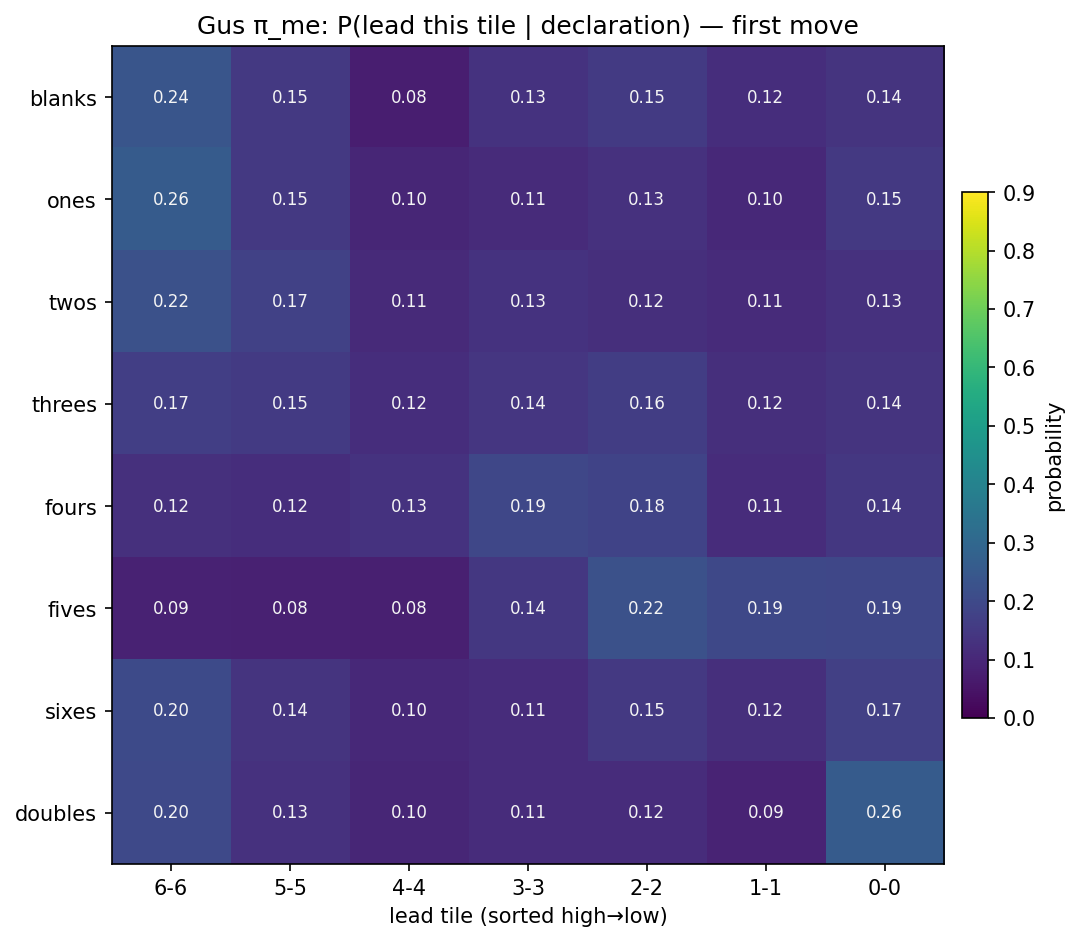 P(lead this tile | declaration) for the opening play.